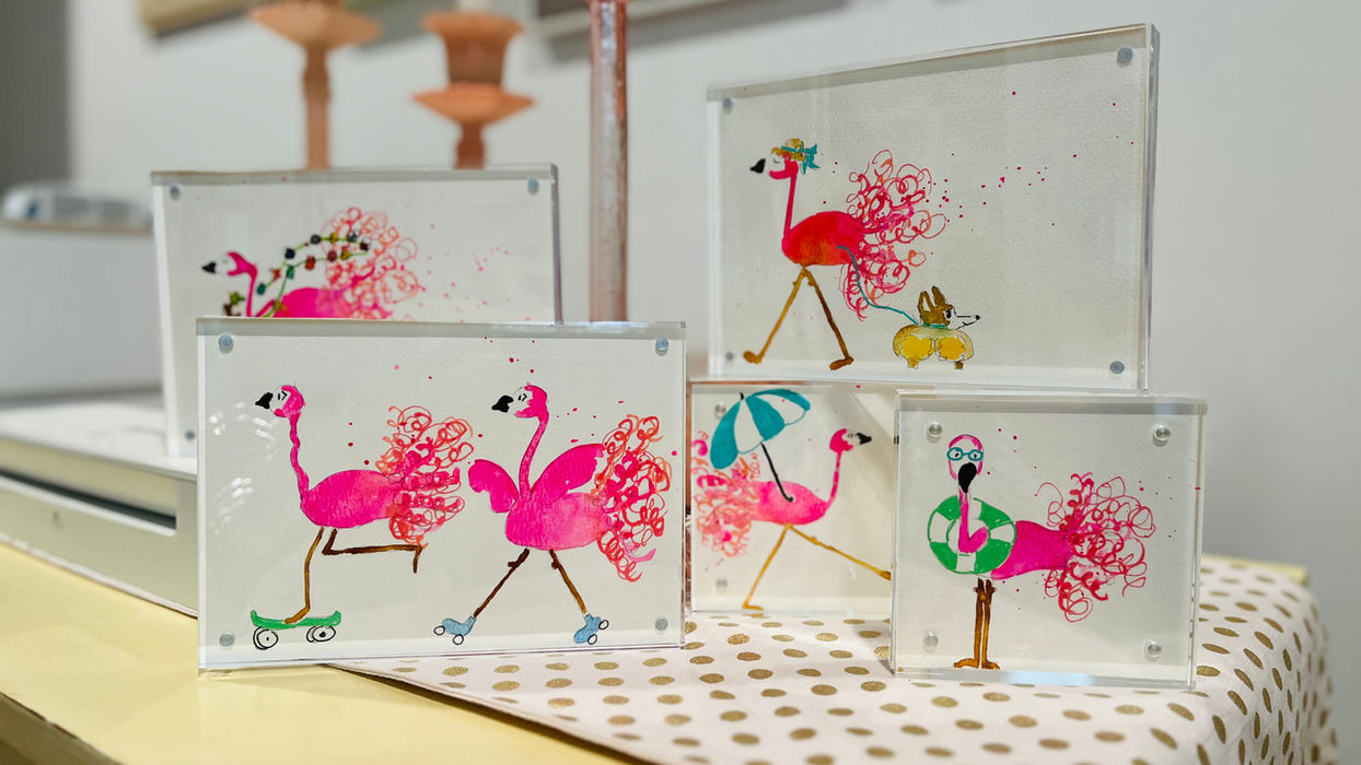 Artist Cheryl Gray lives with her husband Steve and her dog Pepsi in beautiful Santa Rosa Beach Florida. Together they have 5 children and 8 grandchildren scattered across the USA. Cheryl paints in watercolors, and acrylics, but it is her Flamingos that are the favorite of tourists and locals along the sandy beaches of 30A. She also teaches watercolor classes in her home on a weekly basis.
